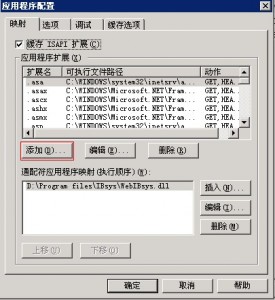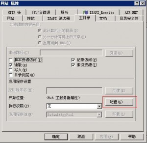 打開IIS 6管理器,在"網(wǎng)站"上點(diǎn)右鍵-->屬性-->主目錄-->配置-->添加,,操作方式就不詳寫了,繼續(xù)上圖