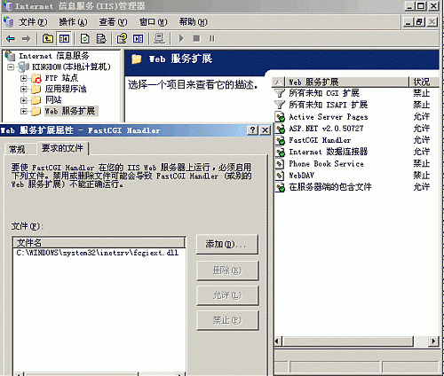 同時在 IIS 的 “Web 服務(wù)擴(kuò)展”里多了 FastCGI Handler