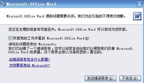 打開word文檔時(shí),遇到過錯(cuò)誤報(bào)告信息對(duì)話框?yàn)椤盎謴?fù)我的工作并重啟microsoft office word”的選項(xiàng)信息嗎?