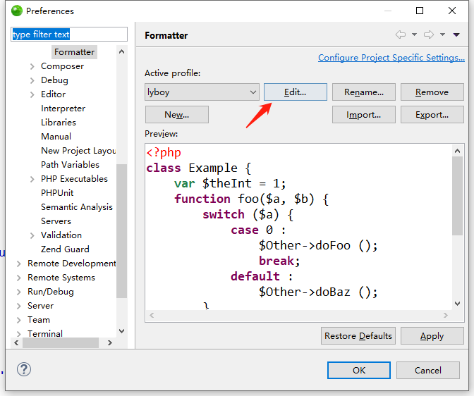 首先進入window-->Preferences-->PHP-->Code Style-->Formatter創(chuàng)建或修改不需要格式化注釋的模板