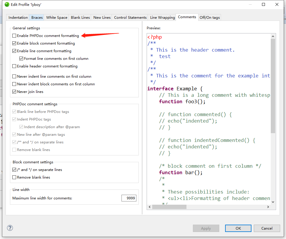 首先進入window-->Preferences-->PHP-->Code Style-->Formatter創(chuàng)建或修改不需要格式化注釋的模板